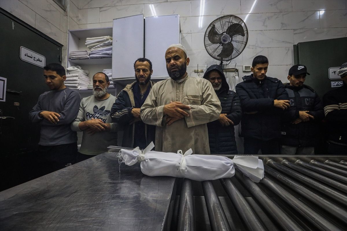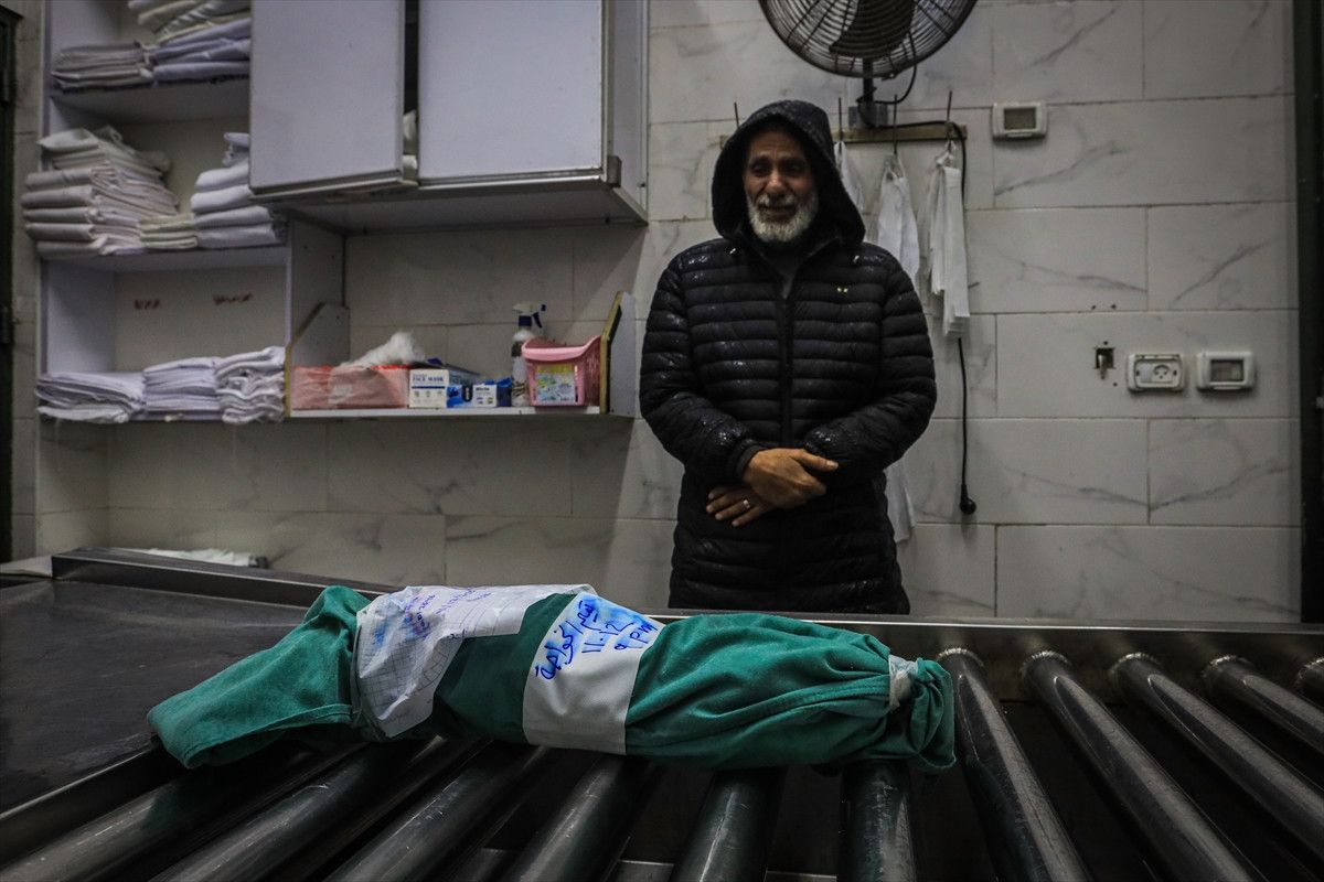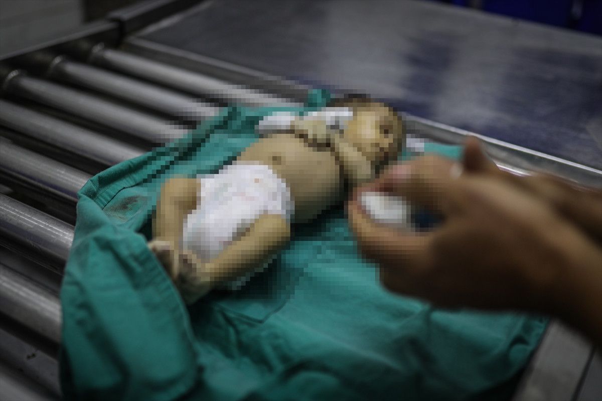 Gazze’li bebeğin naaşı, cenaze işlemleri için Gazze kentindeki Şifa Hastanesi’ne getirildi.